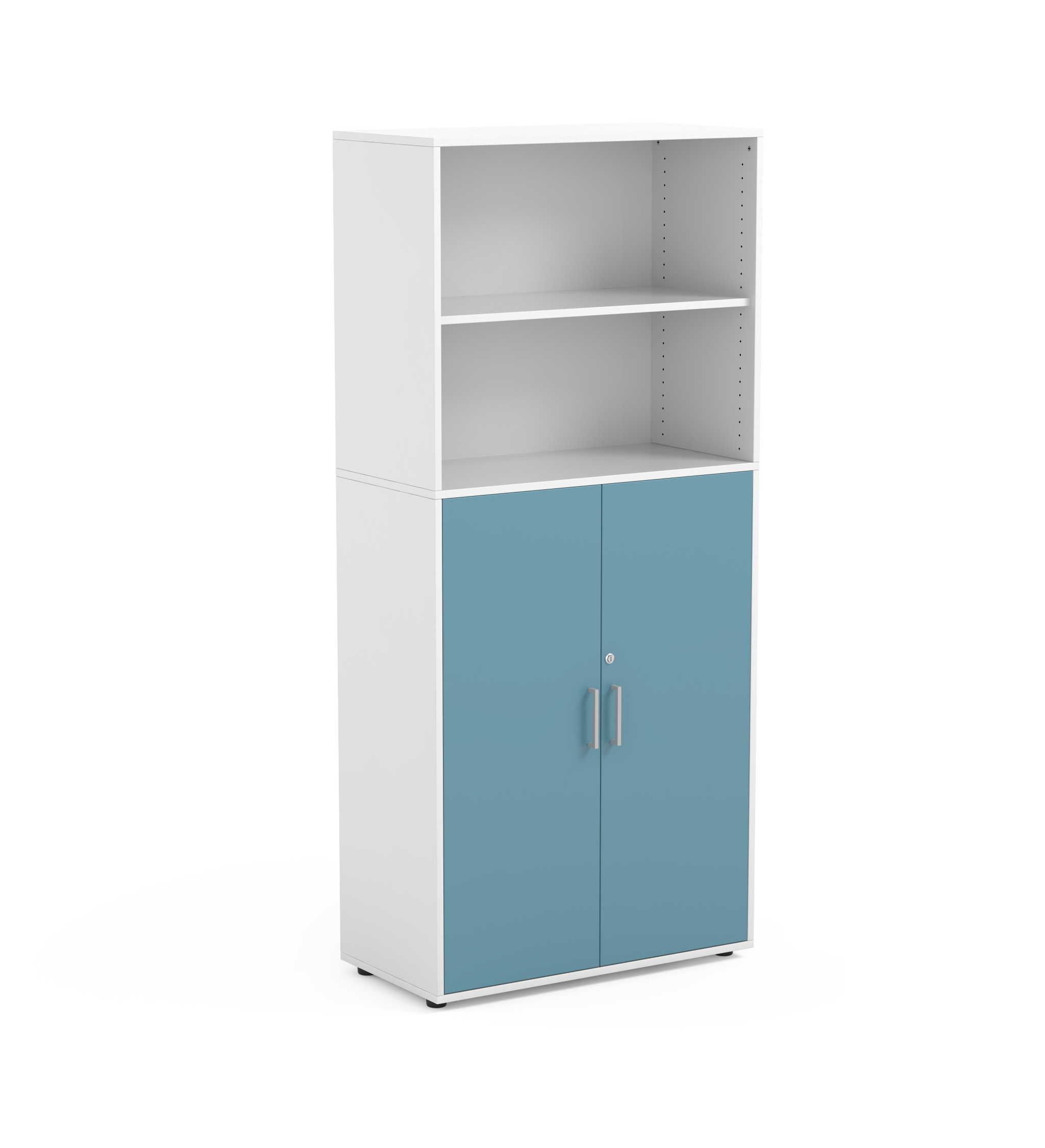 200cm high school cupboard with two spaces at the top and two doors with spaces at the bottom. Ideal for equipping cooperative learning classes.