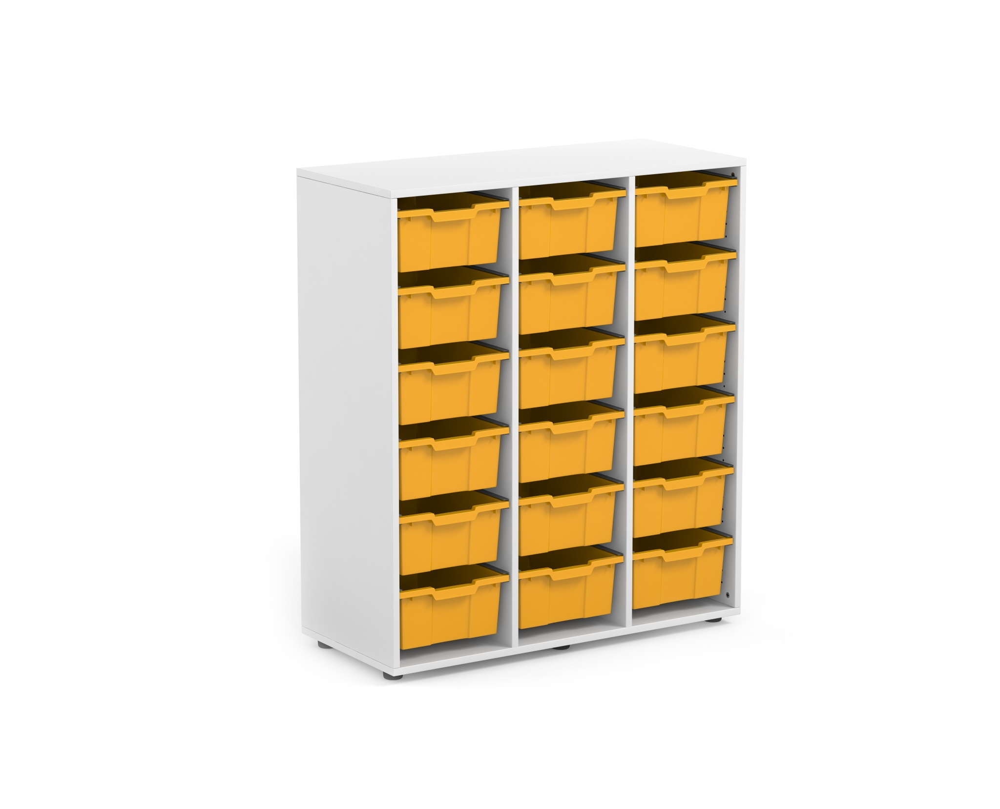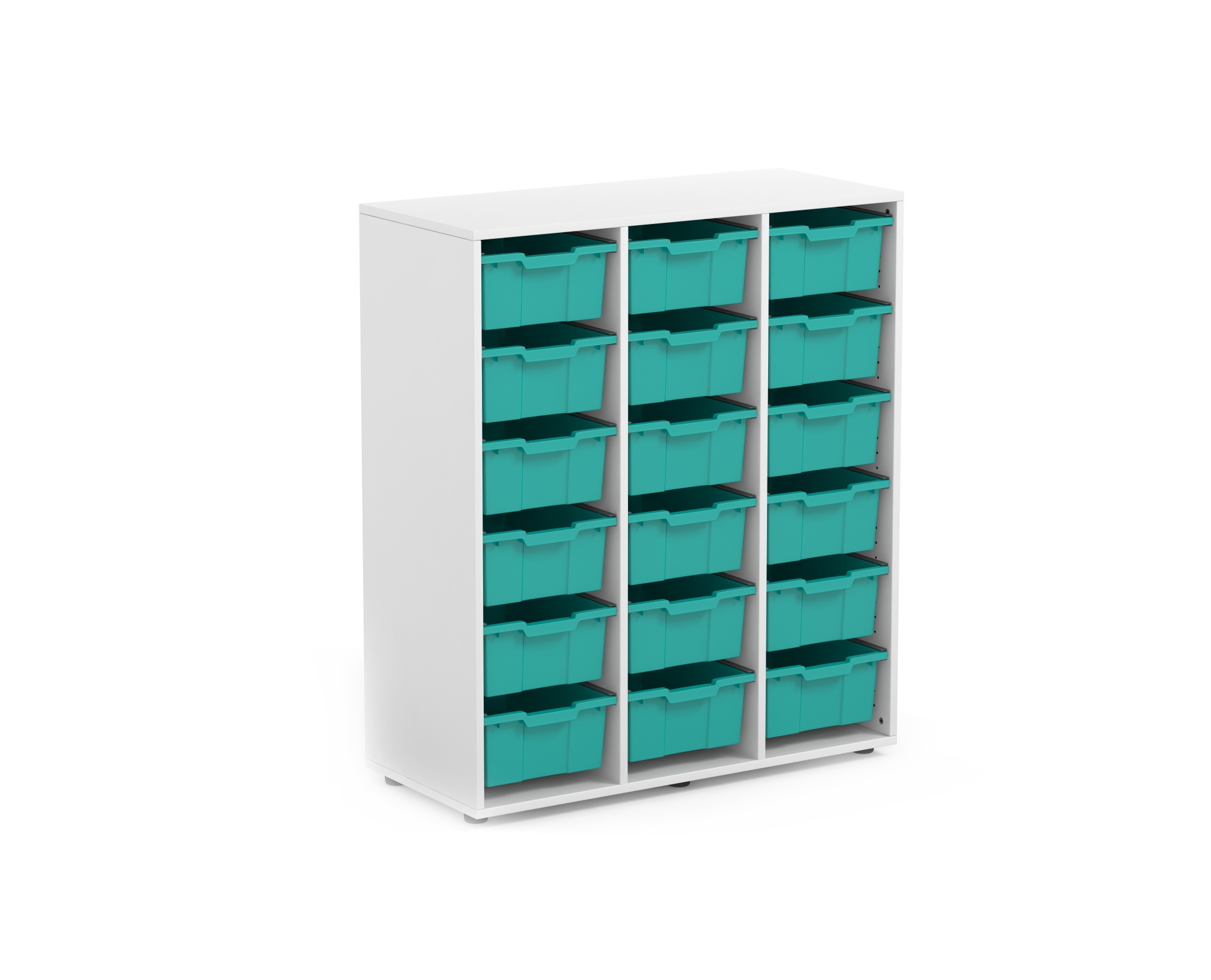 120cm high school cupboard with three columns to store 18 small bowls. Ideal for equipping cooperative learning classes.